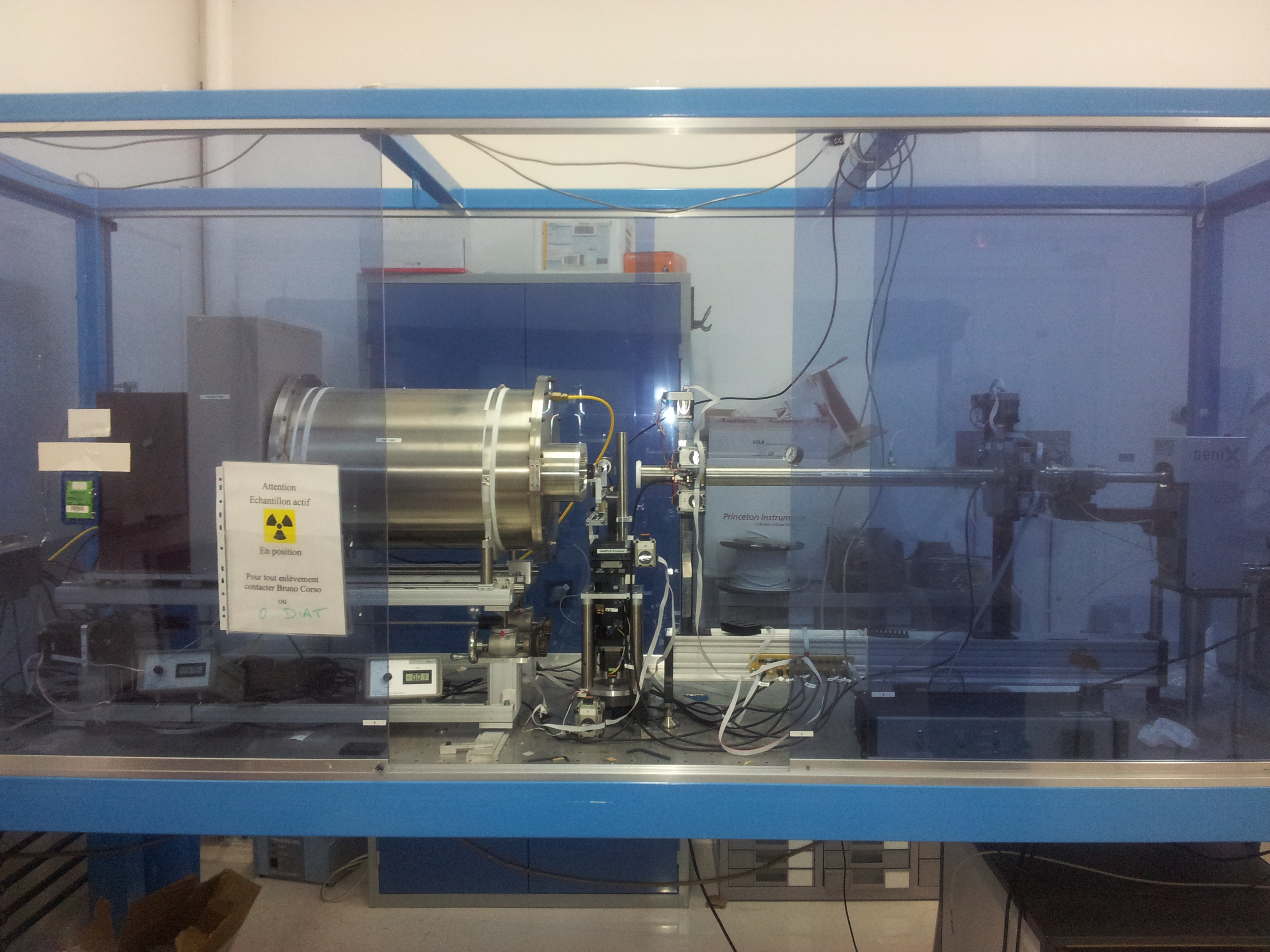 This Small- and Wide Angle X-ray Scattering device allows for recording information in the 2×10-2 – 3 Å-1 range of sample-detector distance.