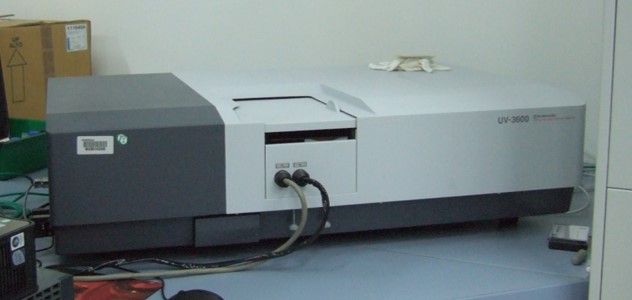 A Shimadzu UV-3600 UV spectrometer of the UV-vis-NIR type, covering a wavelength range from 190 to 3300 nm and equipped with: