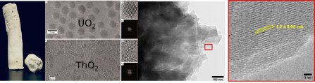 The molecular systems studied are then used for the development of short circuits, in the various fields of the life cycle of metals treated at the ICSM: At the level of the nuclear fuel cycle, the studies carried out aim at the simplification of a closed cycle driven by safety, thanks to a controlled management of actinide mixtures. Separation is controlled by a judicious choice of the molecular topology of the extractants used, mainly malonamides, which allows to play on the following aspects kinetic and thermodynamic of separation. The approach also integrates the material finite aspect through the direct and controlled preparation of actinide materials, pure or in mixture, organized at the nanoscale. As nanoscale organized hybrid materials can display unusual properties compared to conventional inorganic materials, the team has developed two bottom-up approaches to target the precipitation of such materials. Finally, in a more general way, in order to answer the lack of possibilities of shaping porous materials with a wide applicability, we have developed, in collaboration with a team of CEA Marcoule (LPSD), an approach of preparation of hierarchically porous materials based on the stabilization of Pickering emulsions by means of MOF. Other means of shaping MOF-based materials are under study in the laboratory, like the 3D printing or the development of thin layer on conductive support.