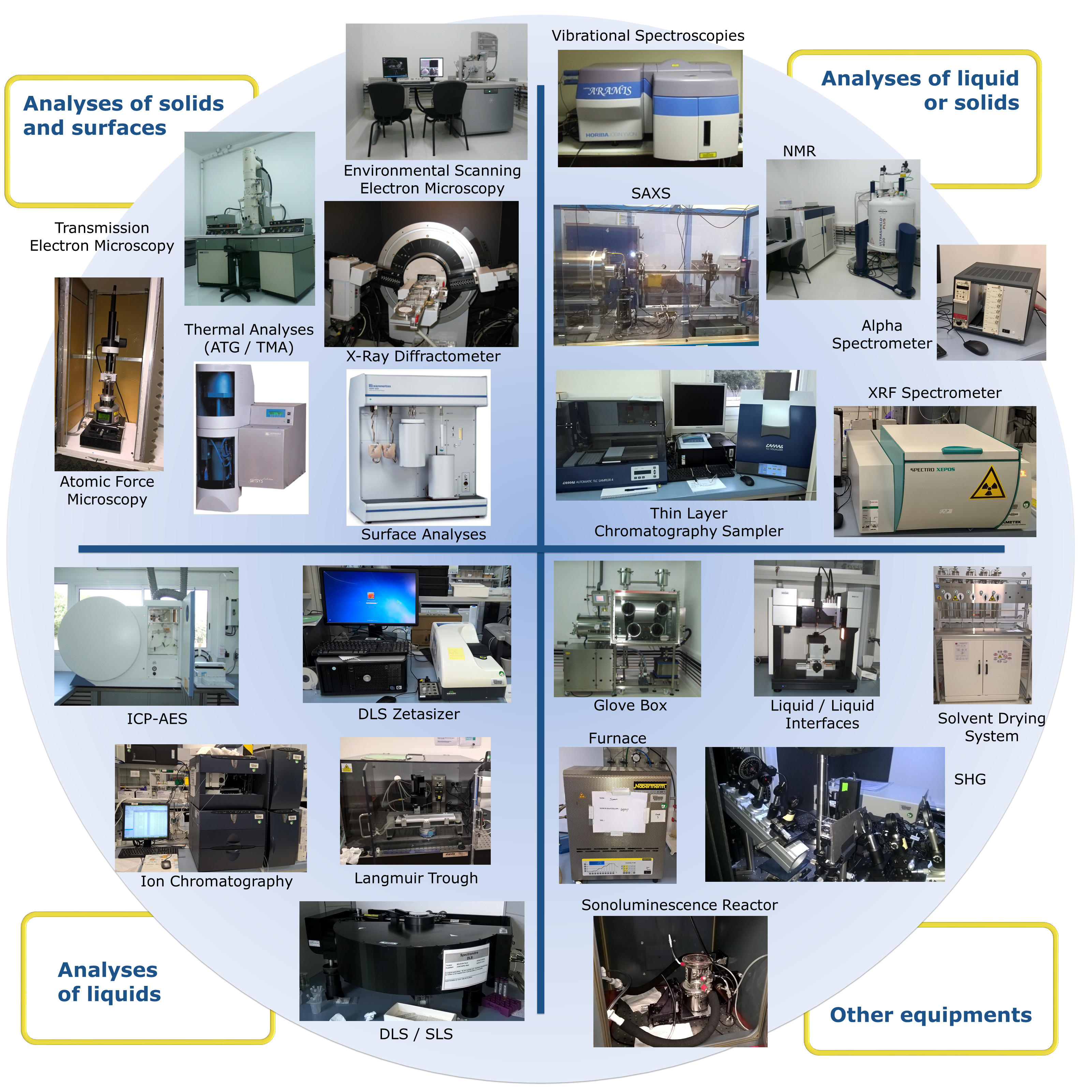 Page principale / Diffractomètres et réflectomètres / Diffusion DXPA-DXGA / Analyse thermique / Microscopes Electroniques / RMN / ICP / UV / IR / Raman / FluoX / Tension de surface / Analyseurs de surface / Chromatographies / PAC Balard
